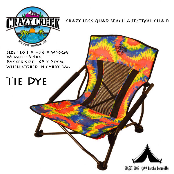 Crazy Creek Quad Beach and Festival Chair Customer reviews Customer reviews 46 out of 5 stars 46 out of 5 33 global ratings 5 star 76 4 star 14 3 star 6 2 star 0 0 0 by CRAZY CREEK. Crazy Creek Quad Beach and Festival Chair Tie-Dye Crazy Creek Quad Beach and Festival Chair Tie-Dye 25. The Crazy Legs Quad Beach Festival Chair is the perfect low-back camping chair to sit low and comfy at the beach park concert or festival. DescriptionThe Crazy Legs Quad Beach Festival Chair is the perfect low-back camping chair to sit low and comfy at the beach park concert or festival. Perfect for low seating off the ground.