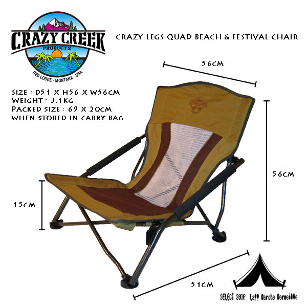 Sit low and comfy on the sand park grass or festival or concert meadow with the Crazy Legs Quad BeachFestival Chair. Headed to a festival like Spokatopia or your favorite lake beach this summer. Free shipping for many products. I would have given this 5 stars or even more but I find it a bit disappointing that Crazy Creek. The Crazy Legs Quad Beach Festival Chair is the perfect low-back camping chair to sit low and comfy at the beach park concert or festival.